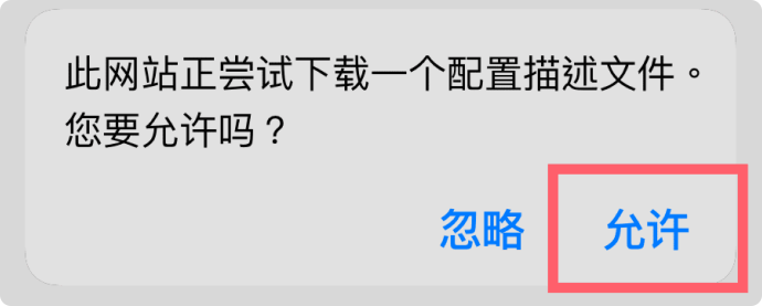 允许安装未知的来源,点击"允许"下载安装必要的描述文件